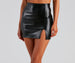 Show off curves with a mini skirt that flatters and stuns! The skirt features an elastic high-rise waist. a bodycon fit. and a sleek high-side slit. The skirt is composed of a lined faux leather fabric that offers a form-hugging fit with a moderate stretch. Complete look with a bustier.