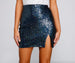 Rule the sea in a mystical mini skirt that will complete your stunning sea princess costume this Halloween! The skirt features a flattering high-rise waist. a sultry side slit. and a form-hugging silhouette. The sheer mesh fabric has a full knit lining and is embroidered with all-over teal sequins. Style with a beaded bustier for a picture-perfect look.