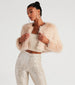 Achieve a stylish. diva-inspired look by layering this faux fur jacket over your outfit of the day! The crop jacket features long sleeves. an open-front design. and a cropped hem. Style with a chic corset and trousers for a holiday party!