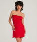 Turn on the charm in this strapless mini dress out on the town or at a party! The side ruched seam accentuates your curves while the A-line silhouette provides a flattering fit along the playful mini-length hem. Complete the look with heeled sandals.