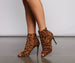 Yes babe. you'll be the stylish stunner of your trendy squad in these fab stiletto booties! They feature an almond-shaped peep toe. an inner zipper closure. a sleek stiletto heel. and a smooth faux suede material with an all-over leopard print. Pair these booties with a tie waist romper for a girl's night.