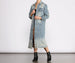 Get an edgy chic look in this stylishly destructed long line denim jacket! Layer over your favorite 'fit or wear as a cute dress with some sleek booties!