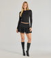 Make a charming entrance in this rhinestone skort boasting a flattering high-rise waist and tiered ruffle silhouette. Pair with a long sleeve top and boots for a chic allure.