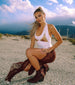 Achieve a sultry goddess allure with this metal chain bra featuring triangular cup designs and dual adjustable back chains with lobster clasp closures. Perfect for a concert or festival. complete the look with a mini skirt.