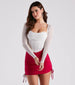 Make everyone swoon for your sultriness in this satin corset top featuring sheer mesh long sleeves. a sweetheart neck with mesh overlay. an underwire. padded bust. back hook-eye closures. and flexible boning inserts along the fitted. crop hem. Style with a faux leather mini skirt for a night out!