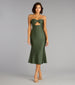 From the ruched bust to the figure-skimming fit. this strapless midi dress is equal parts sleek and sultry. A versatile dress for elevated evening events or plans.