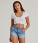 Some sunshine and good tunes call for these mid-rise denim shorts! With an adjustable belted waist and fitted silhouette. these shorts will keep you comfortable and stylish all day long. Complete the look in a cute graphic top and sneakers.