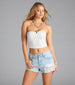 Sunshine days call for a bestie like this cropped tube top! It's designed with a trendy decor insert and a fitted silhouette that flaunts your figure.