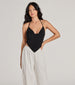 • Halter neckline with spagehtti strap tie