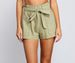Show off your sweet style in these adorable paper bag shorts! They feature a high-rise waist with a tie-front belt. front pockets. a single back pocket. and a fitted silhouette. Pair these chic dressy woven shorts with a crop top and cute wedges.