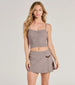 A sleeveless knit top features a sweetheart neckline with a flattering ruched bust and a fitted crop hem. Perfect for everyday styling.Â