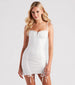 Create the sweetest look for weekend brunches or daytime parties in this adorable floral lace mini dress. It features a sleeveless sweetheart neckline with a dainty ruffled trim. a bust seam outline with center buttons. adjustable spaghetti straps. dual vertical ruched accents that run down the length of the dress with adjustable ties at the mini-length hem. and a curve-hugging fit. The sheer floral lace fabric includes a full knit lining. Style with cork wedges.