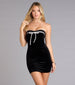 Serving soft glam with a flirty twist. this velvet mini tube dress is your go-to for instant confidence. The body-hugging fit and playful bow detail keep it equal parts chic and fun.