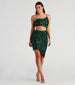 Oh-so-gorgeous. the Talia sequin formal dress was made for glamorous nights out! She features a one-shoulder neckline with dual bungee spaghetti straps. a bold waist cutout that leads from the front to the back. a short. asymmetric-cut hem. and a curve-hugging bodycon silhouette. The fabric features all-over sequin embroidery for the prettiest shine. Complete the look with rhinestone hoop earrings.