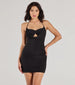 Be the talk of the club in this sexy bodycon mini dress showcasing a sweetheart cowl halter neckline and a cutout bust. Style the dress with heels.
