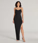 Teigen High Slit Rhinestone and Crepe Long Dress