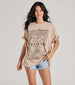 Style up your bar-hopping 'fit with this oversized graphic tee! Made with cotton fabric. it features a crew neckline. short sleeves. a trendy tequila label graphic. and a relaxed oversized fit. Style with a denim mini skirt and booties!