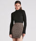 This everyday basic is just your type! The long sleeve top features a mock neck. front zipper closure. and a fitted hem on rib-knit fabric. Complete the look in a mini skirt and a jacket.