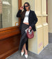 There She Goes High-Rise Slit Polka Dot Satin Midi Skirt