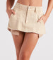 Throw it back to the early 2000s with this trendy micro mini skirt! It features a low-rise waist. large front pockets. back pockets. and an ultra-mini-length hem with a frayed edge and the pocket lining peaking below. Style this form-hugging mini skirt with a crop top. sandals. and a cool pair of shades.