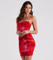 You'll tie-dye over this casual mini dress to add some color to your closet for warmer seasons ahead! It features a square neck. bungee spaghetti straps. and side ruched seams that accentuate your curves along the bodycon silhouette. The dress is composed of stretchy mesh fabric with a sewn-in knit lining. Complete the look in a cropped denim jacket and sneakers.