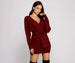 Get an adorable look perfect for a casual date night in this mini sweater dress! It features a wrap front and back with a front tie detail and a short. curve-hugging fit. Pair the dress with chic thigh-high boots for a gorgeous fall-time vibe.