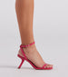 Catch all the attention in these fashion-forward heels featuring a square toe. thin toe strap. an angled stiletto heel. and a wrap-around ankle strap with buckle closure. The heels are composed of sleek and smooth faux leather material. Style with a trendy mini handbag.
