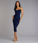 Level up your style in this bodycon dress. With a sleek midi length. flattering ruching. and delicate straps. this dress is made for every RSVP on your calendar.