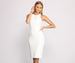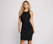 Keep it timelessly chic in a dress that wows! Perfect for a cocktail event or making the right first impression. this mini dress is a must! The dress features a crew neckline with a racer bust. a fitted form-hugging fit. and composed of a ribbed knit fabric. Complete your chic outfit with mules and duster earrings.