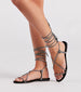 Give off a total glam vibe in these rhinestone lace-up sandals that will add a trendy sparkle! They feature an almond-shaped toe with a strap. an asymmetric strappy design that laces up the leg with mini rhinestone embellishments. and a comfortable flat sole. Style with a graphic tee and distressed denim shorts for an edgy look.