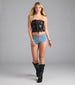 Set the trend at concerts and festivals in these denim hot shorts paired with cool boots! The mid-rise waist is flattering. while the form-hugging design shows off your curves.