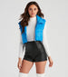 Keep your status as a stylish trendsetter with this fab cropped puffer vest! It features a sleeveless collared neckline. a complete zip front. a cropped hem. and adjustable drawcords on each side for a cinched fit. The vest is composed of a lined nylon-woven fabric with insulation to help keep you warm and protected from the elements. Layer over a long sleeve top with your fave pair of denim.
