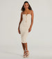Have your trending moment in this midi dress! It's designed to hug your curves in a bodycon silhouette while the front lace-up adds a playful touch to your day or night look.
