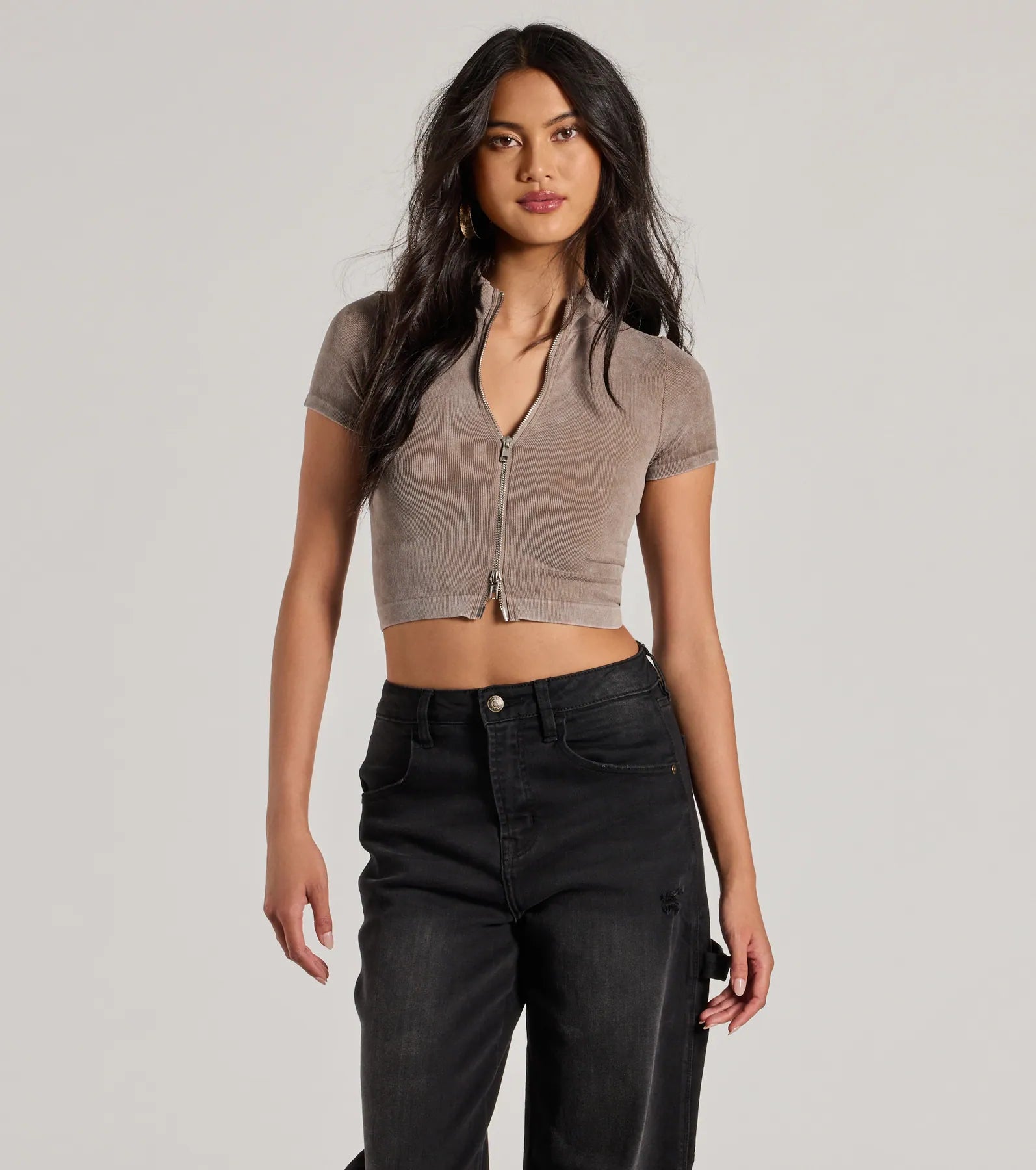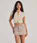 Set the trend in this sporty-inspired crop top to elevate your everyday style! The top features classic short sleeves and a mock neckline. a zip-up front closure. and a fitted crop hem to flaunt your figure. Complete the look in a cute skort.
