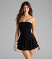 Show up and show off a trendy attitude at happy hour in this strapless skater romper. The drop waist leads to a mini-length overlay with the cutest ruffled design and hidden shorts for coverage.