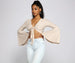 Keep on trend with a cute dotted tie front top! The top features a plunging V-neckline. a tie-front accent. long bell sleeves. and a cropped hem. The top is composed of a woven dotted fabric that offers a form hugging fit with minimal stretch. Complete look with high waist jeans and mules.