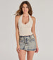 This halter top is designed with a double-lined brushed knit fabric offering plenty of stretch for comfortable wear. It features a sleeveless plunging V-neckline with a trendy halter strap. an open back. a mid-length hem to pair with your fave low-rise jeans. and a form-hugging fit.