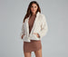 Stay on trend with a jacket that is part casual. part glam! The jacket features a collared neckline. a zipper front with multi-button closure. long sleeves. side pockets. and an illusion stripe design. Complete look with a bustier and high waist jeans.