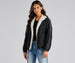 Layer on this trendy reversible jacket for a cozy-chic vibe! It features a reversible design with a sleek nylon exterior and a soft faux fur interior. The jacket has a mock neckline. long sleeves. a complete zip front. and an adjustable drawstring hem. Style this jacket over a basic tee with denim for a casual look.