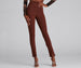 Step up your everyday look with these chic and trendy high-rise pants. They feature an elastic-banded waist. vertical seams running down the legs leading to a split hem design. and a form-hugging fit. Style these pants with clear mules.