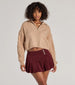 This trendy corduroy mini skort features a mid-rise fit with front button closures. an of-the-moment drop waist design. a short pleated A-line overlay with a side slit. and hidden fitted shorts. Style with a cable knit sweater and knee-high boots.
