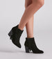 Show off a trendy strut in these fab fringe ankle booties! They feature a pointed toe. a stacked block heel. cute fringe detailing on the side. and are composed of a faux microsuede material. Style with your fave pair of skinny jeans.