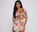 Set off on those tropical dreams in a cute tie-front top! The top features a plunging V-neckline. tie-front accent. long sleeves. and a tropical palm leaf print. The top is composed of a sheer mesh fabric that offers a form hugging fit with a moderate stretch. Complete look with the matching maxi skirt.