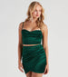 This satin crop top brings fun and stunning looks to your night! The top features a sleeveless cowl neckline. pleated detailing at the bust. spaghetti straps. and a cropped. form-hugging fit. The smooth satin-knit fabric offers a moderate stretch. Complete the look with the matching mini skirt and strappy heels.