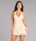 Romantic with a little edge. this chiffon mini is made to move. The halter neckline. lace-up corset detailing. and tiered ruffles bring that flirty. fairytale energy—perfect for brunch to concerts. and daydreaming.