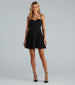 Twirling tonight is inevitable when wearing this crepe skater dress! It features a crepe bodice. sweetheart neckline. spaghetti straps. a padded bust. and a chiffon short-length hem. Complete the look with a rhinestone choker and heels for a party or school dance!
