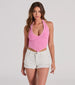 All you need is your undeniable sass and this crop top for an adorable style! It features a sultry halter V-neckline and a fitted pointed crop hem that flatters your figure on mineral wash stretchy rib knit fabric. Complete the look in jeans and sandals.