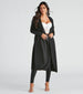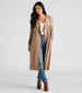 Go undercover in this chic trench but don't cover up that cute outfit! This coat features a draped open front. lapel collar. fitted long sleeves. a removable tie waist belt that cinches your waist. and trendy side pockets. The textured lightweight woven fabric offers a relaxed fit and a moderate stretch. Complete your look in this trench coat with a basic bodysuit and high waist jeans.
