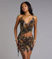 Not your average animal print—this mini dress brings wild energy with its bold cutouts and asymmetrical hem. The sultry silhouette was made for after-dark plans that call for a little sultriness!