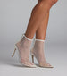 Experience the ultimate in sexy sophistication with these statement stiletto booties! These pointed-toe booties feature sheer fishnet adorned with sparkling rhinestones. adding a touch of glamour to any outfit.